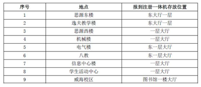 1、本次报到注册工作利用“本科生自助报到注册一体机”进行,一体机报到注册系统开放时间为2月16日9:00至2月19日22:00,机器放置位置见下表。本科生院将于2月19日22点统计各公司按时报到率,2月20日系统继续开放,统计最终报到注册情况。