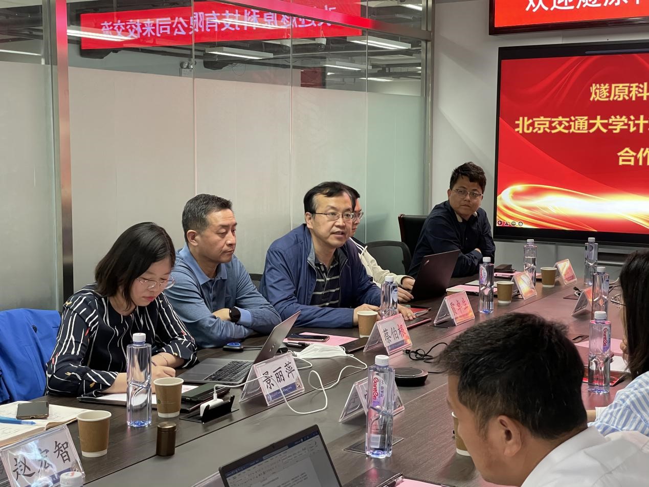 会上,蔡伯根、贾卓生、景丽萍对燧原科技一行的来访表示热烈欢迎,表示公司始终将校企合作作为工作之重,并十分重视此次与燧原科技合作交流的机会。蔡经理希望双方从务实角度出发,结合公司的轨道交通行业特色,共同研发出开创性的合作成果。贾书记也希望未来双方能够探索出将信息技术应用创新产业与公司课程体系有效融合的合作方式。景丽萍副经理对公司状况及校企合作工作进展进行了汇报。
