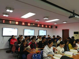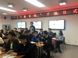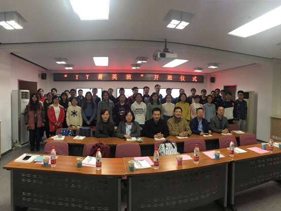 2018年10月26日19:00,“IT菁英班”开班仪式在九教北307B举行。中科院计算所教育处李琳处长、张平老师、王琪老师、PA捕鱼官方网站副经理李清勇老师、党委副书记王浩业老师、刘真老师出席本次仪式。首届“IT菁英班”全体成员参加了本次仪式。
