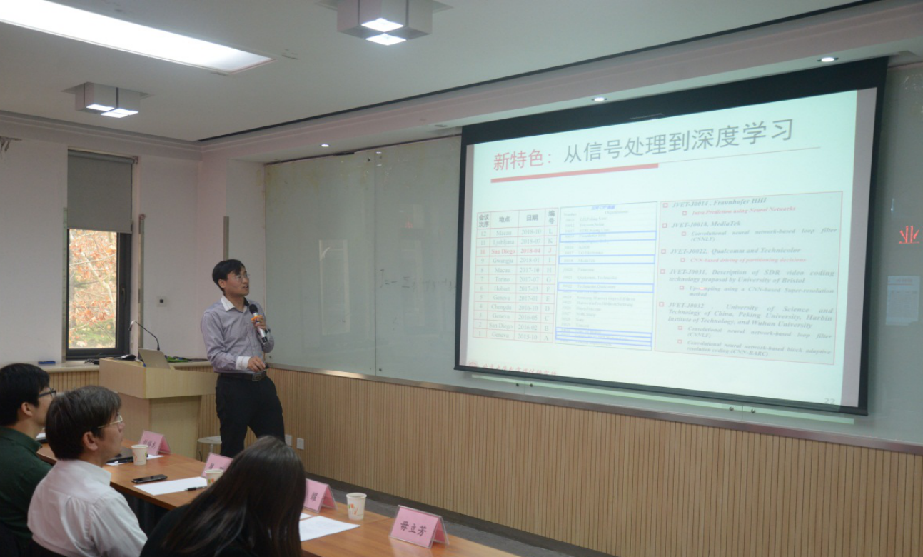 北京大学信息科学技术公司马思伟教授就“视频编码技术的演进”进行了报告,马教授讲到,视频编码技术发展至今已有六十多年的历史,传统视频编码技术主要是从信号处理的角度降低视频数据中存在的冗余,发展了预测、变换、熵编码等经典的编码技术,并一直不断演进优化提高了视频压缩效率,形成了一代又一代的高效压缩标准。这一时期的视频内容主要是供人观看的影视节目,压缩的目标是以较低的存储空间或传输带宽为人们提供较好的观看质量。而随着视频应用的普遍展开,如视频监控、无人驾驶等生成大量非以观看为目的的视频内容,更注重的是在前端采集时能够对视频内容进行即时的分析理解,后期还能对海量的视频内容进行更高效的检索管理等,此时传统编码方法的不足已十分凸显。在此背景下出现了视觉特征编码、深度学习编码等技术,用以辅助满足视频分析需求,在这一背景下融合信号表示与信息理解的智能编码正在逐渐兴起,并就视频编码技术这一演进过程中做的一些工作进行了阐述。