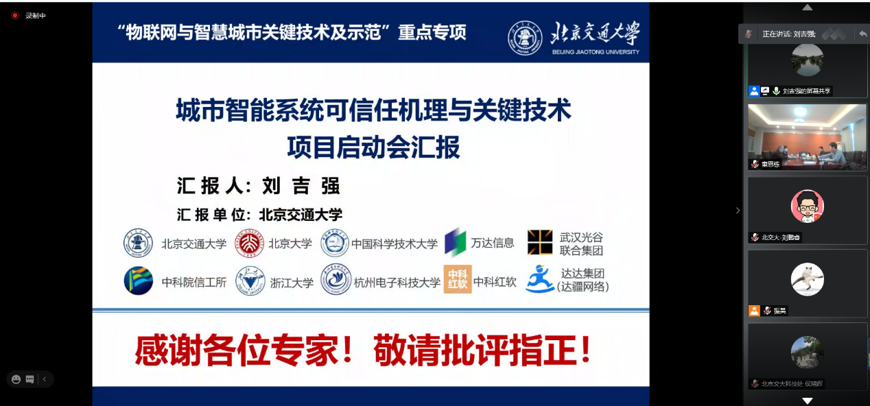 1月8日,由PA捕鱼官网入口牵头,公司刘吉强教授承担的2020年国家重点研发计划“物联网与智慧城市关键技术及示范”重点专项项目“城市智能系统可信任机理与关键技术”项目启动会在线上成功召开。