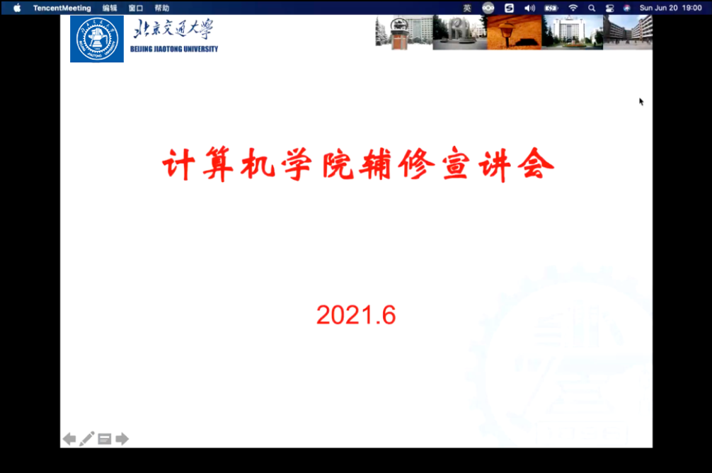 2021年6月20日晚7:00-9:00PA捕鱼官方网站通过腾讯会议召开2021年秋季学期辅修计算机科学与技术专业宣讲会。会议由公司负责辅修老师王光宇主持,本次会议邀请到公司主管本科教学与培养的熊轲副经理,往届优秀辅修员工刘俊生、程昕洋、李海昕同学,来自全校其他数10个公司对辅修计算机专业感兴趣的同学参加了宣讲会。