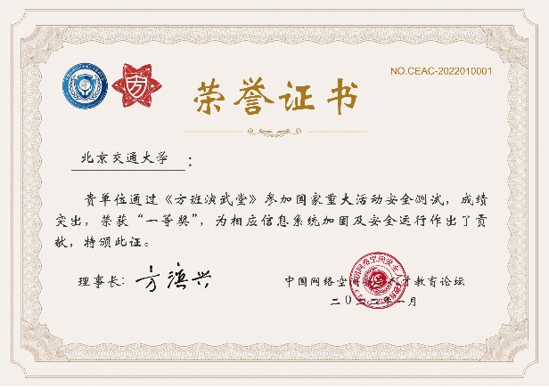 2022年1月在鹏城实验室、中国网络空间安全人才教育论坛(“网教盟”)、中国网络空间新兴技术安全创新论坛(“新安盟”)联合面向北京冬奥会、冬残奥会的安全演练活动中,PA捕鱼官网入口网络空间安全学科责任教授刘吉强老师领队、童恩栋和牛温佳老师指导的研究生团队(武兴宇、吴亚伦、田蕴哲、黄欣宇、陈彤、相迎宵、李轶珂、贾博为、孙瑞、乔紫嫣、陈诗瑶等)积极参与,共挖掘出高危漏洞1个、中危漏洞2个以及低危漏洞14个,最终以第一名成绩荣获一等奖,为保障北京冬奥会、冬残奥会的网络安全贡献了交大力量。
