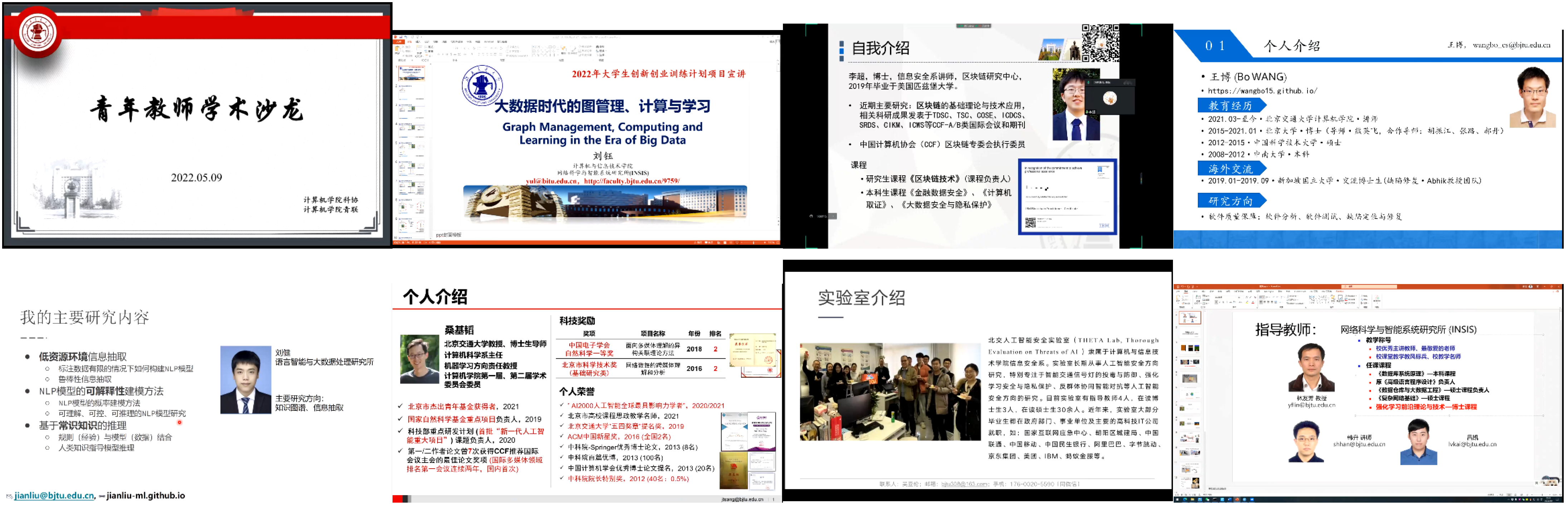 除了指导教师团队介绍外,在5月9日的“青年教师学术沙龙”活动中,7位青年教师代表为同学们带来精彩的学术报告,深入浅出地为员工们讲解了自然语言处理、软件质量保障、大数据的图管理与计算、人工智能安全等当前热门研究方向,并根据自身研究设计多个适合本科生的大创题目。