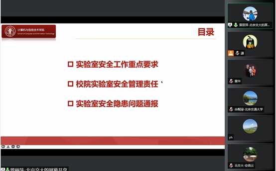 贾卓生书记传达了公司安全工作的部署,进一步强调公司安全的重要性,落实公司加强实验室安全专项行动,做好迎接教育部2022年高校实验室安全检查准备工作,围绕公司重点区域用电安全,安全应急演练和安全教育,安全隐患排查等方面进行部署,要求各系所要统筹做好疫情防控和实验室安全管理,时刻不能松懈,要积极落实各项规章制度,深入开展安全教育,排查安全隐患,针对发现的问题及时进行整改,保障公司教学科研等各项工作的顺利进行。