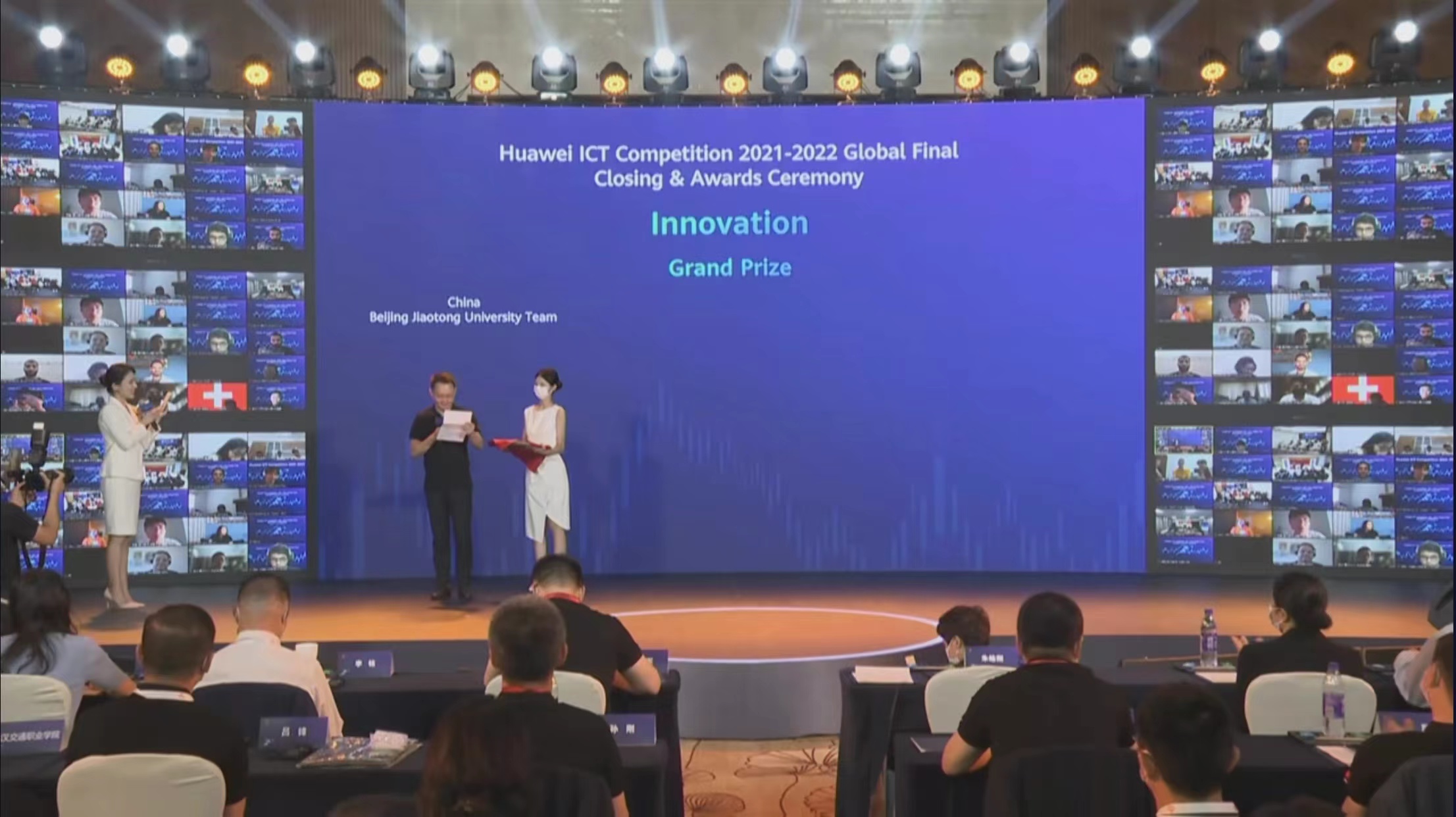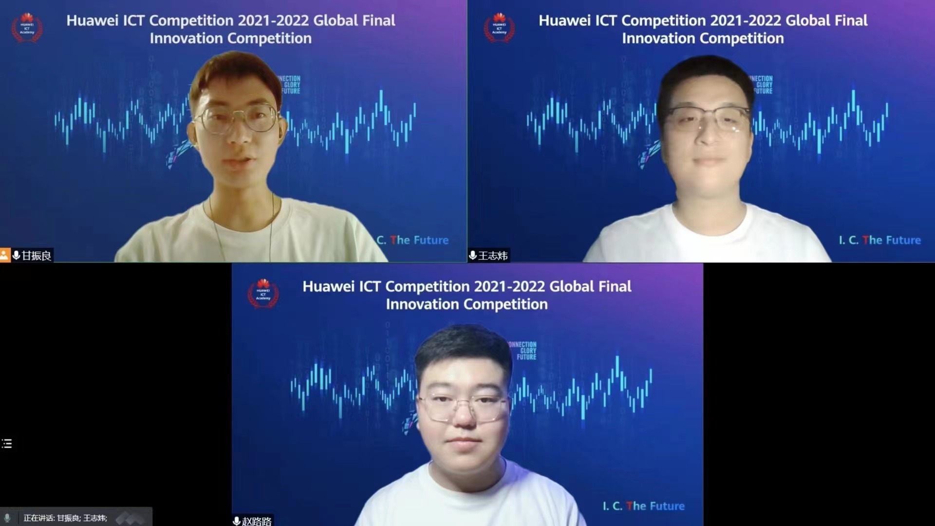 2022年6月17日至20日,华为ICT大赛2021—2022全球总决赛成功举办,并于6月25日在深圳采用线上线下混合方式举办了闭幕式暨颁奖典礼。公司卢思洋老师指导的队伍(2019级本科生:赵路路、甘振良, 21级研究生王志炜)获华为ICT大赛2021-2022全球总决赛创新赛特等奖,在此之前已获得了华为中国老员工ICT大赛2021·创新赛全国一等奖的优异成绩。