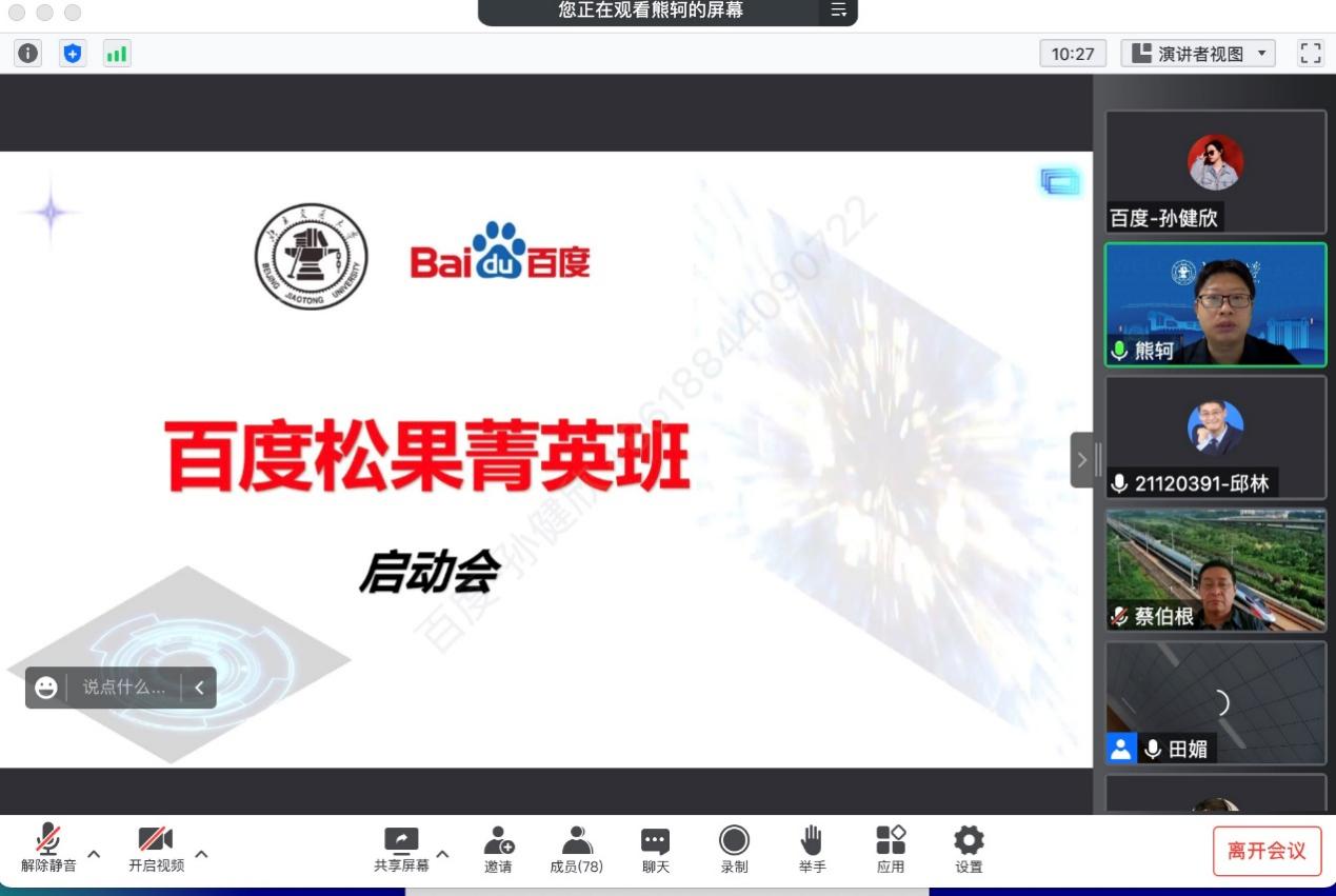 2022年9月25日上午,PA捕鱼官方网站联合百度公司,面向2022级本科生成功召开了2022PA捕鱼官网入口-百度松果人才培养菁英班启动会。PA捕鱼官方网站经理蔡伯根、副经理熊轲、松果精英班班主任田媚、百度高校合作部副总监计湘婷、百度高校合作部高级经理张倩、百度松果精英班百度侧班主任孙健欣、乔文慧等出席了启动会。会议由熊轲副经理主持。