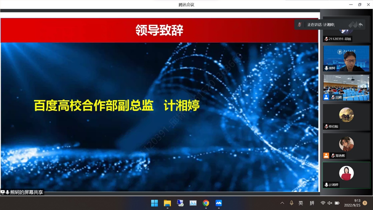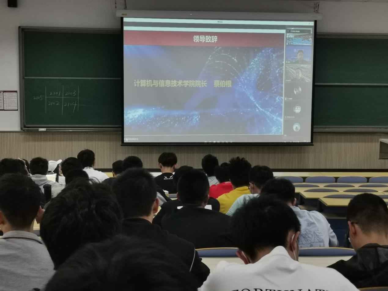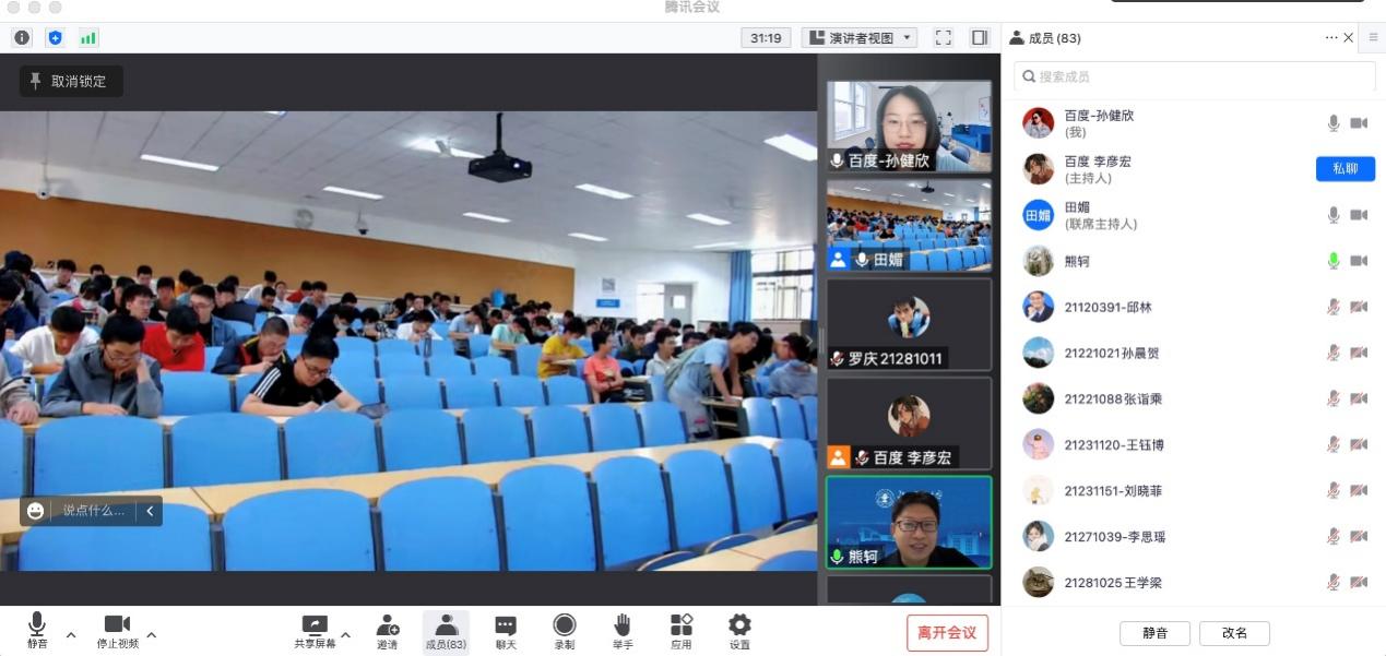 按照疫情防控要求,本次启动会采用了“线上+线下”相结合的方式,在校员工在九教中102教室与百度公司的领导和班主任通过腾讯视频会议开展了一场别开生面的云交流。
