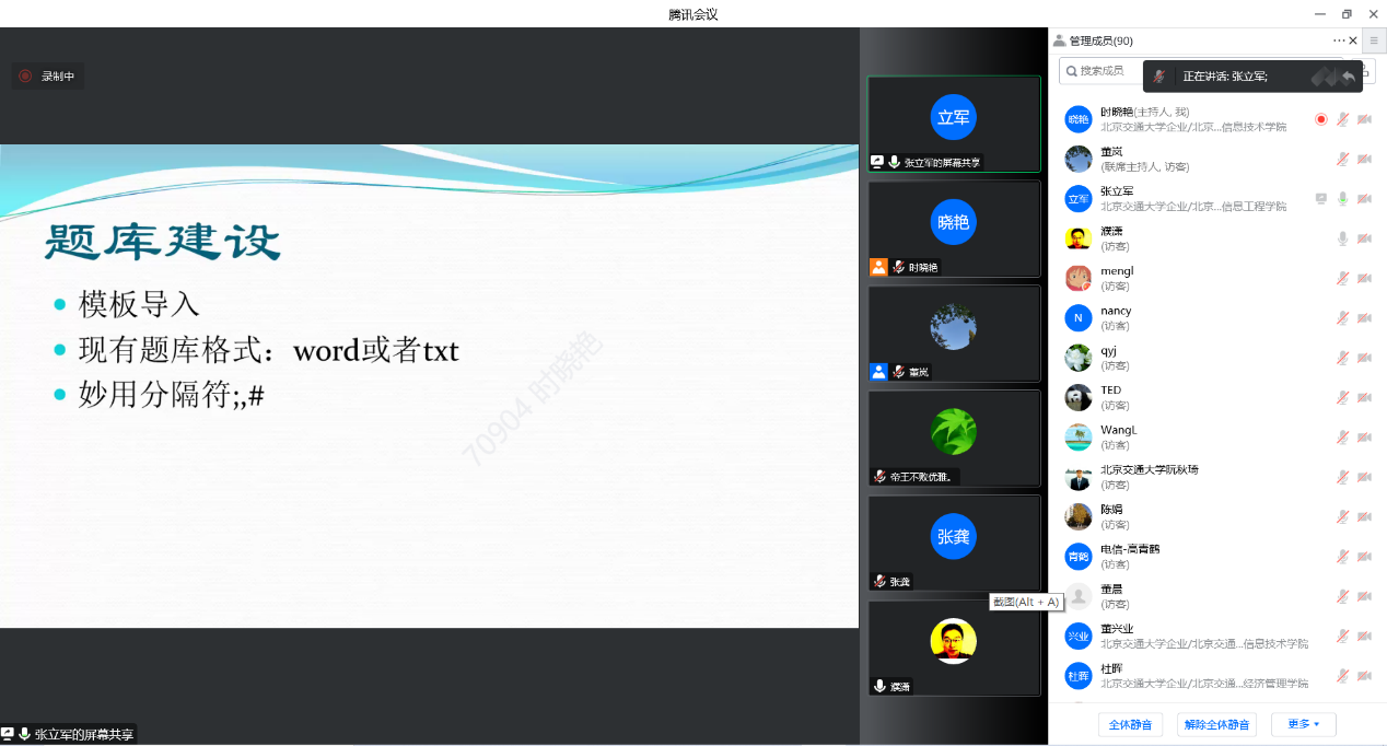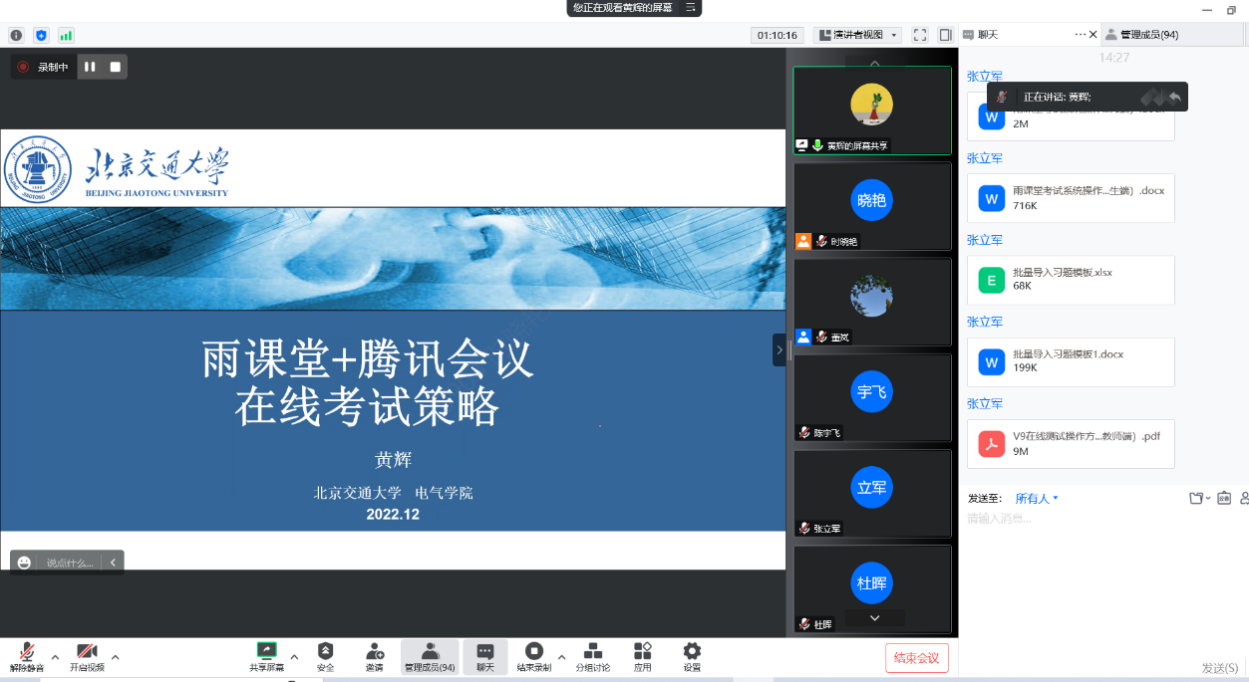 本次会议邀请到了北京市教学名师、电气公司教授黄辉老师和校教师发展中心新媒体组骨干、电子与信息工程公司张立军老师,面向PA捕鱼官方网站全院老师通过腾讯会议做了期末线上考试培训与经验分享。两位老师分别就如何使用雨课堂、课程平台组织出题、监考、防止作弊等进行了详细介绍和分享。全校90多位老师参加了本次活动,参会老师们与两位报告专家在线上进行了热烈的交流和讨论。