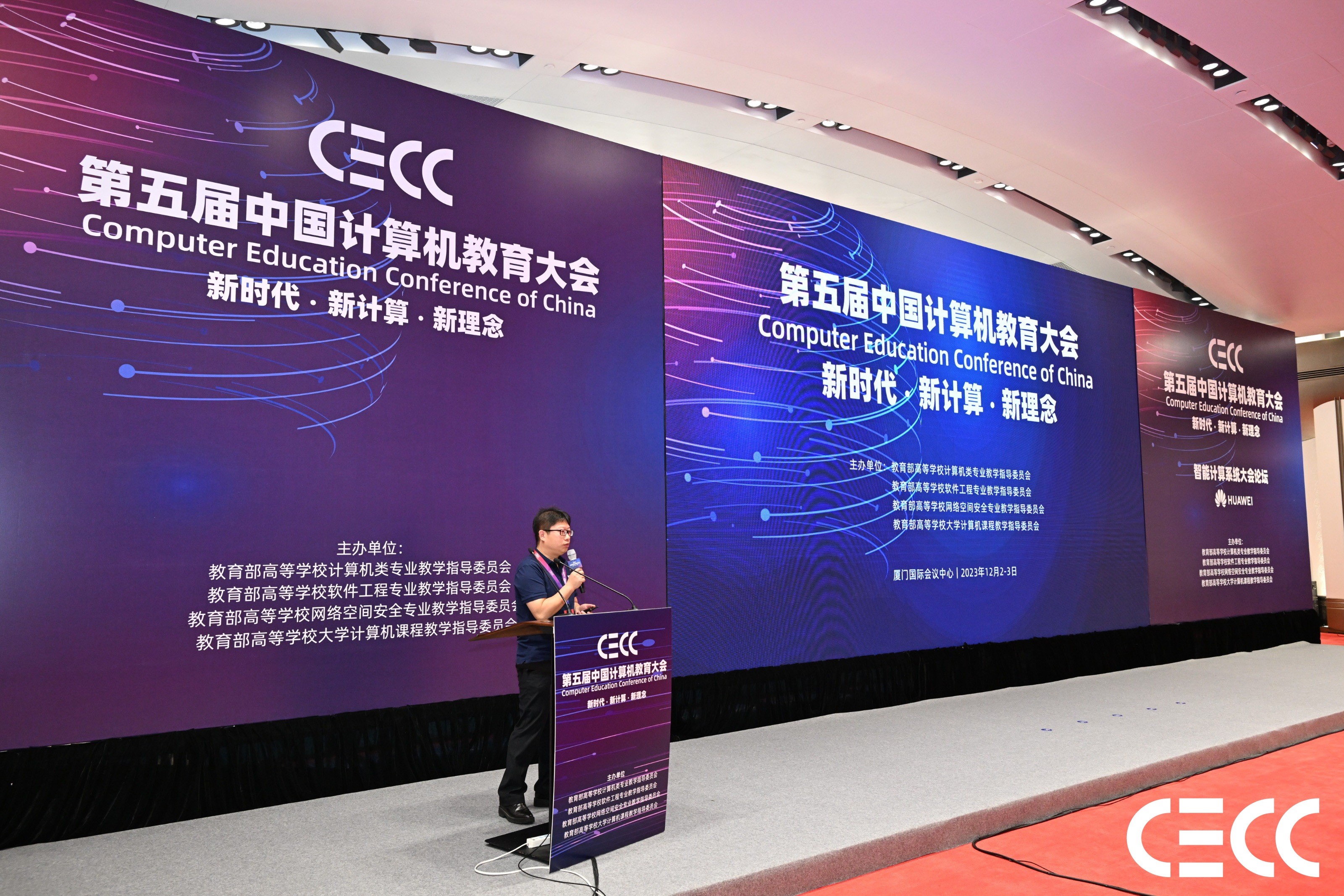 2023年12月2日-3日,由教育部高等公司四大计算机类教学指导委员会联合主办,以“新时代·新计算·新理念”为主题的第五届中国计算机教育大会在厦门国际会议中心召开。来自清华大学、北京大学、南京大学等5000名高校教师及包括华为、百度等在内的1000+企业代表参与本次大会,共话计算机、教育、技术及人才等产业的发展。PA捕鱼官方网站副经理熊轲带队参加了本次大会,并受邀在智能计算机系统大会分论坛做题为“依智能基座,推101改革,育计算机人才”的主题报告。