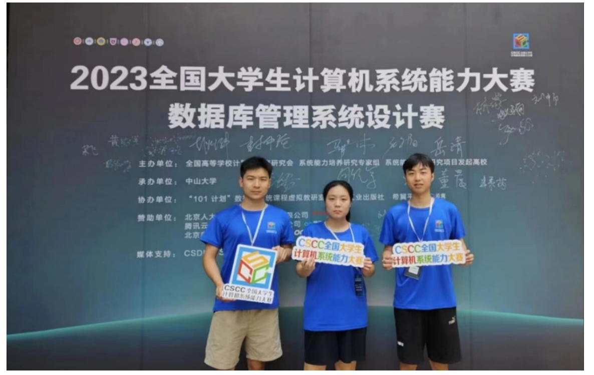 数据库管理系统设计赛获奖同学为计算机科学与技术专业大三员工王雨卉、欧阳煜威、舒江明,指导老师为来自《数据库系统原理》课程组的王宁老师。以上同学在首届数据库赛道基于大赛提供的原型系统框架,实现了存储管理、查询处理、事务处理等核心功能,并提出了切实可行的性能优化方案。
