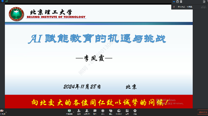 为积极推进AI时代对公司产品的深刻变革,并紧密贴合公司本科公司产品审核评估的反馈精神,特别是针对教师如何高效运用新兴技术手段优化教学模式,提升课堂教学质量与教师教学能力的议题,PA捕鱼官方网站于11月28日下午,在线上召开了“AI赋能教育的机遇与挑战”专家讲座。