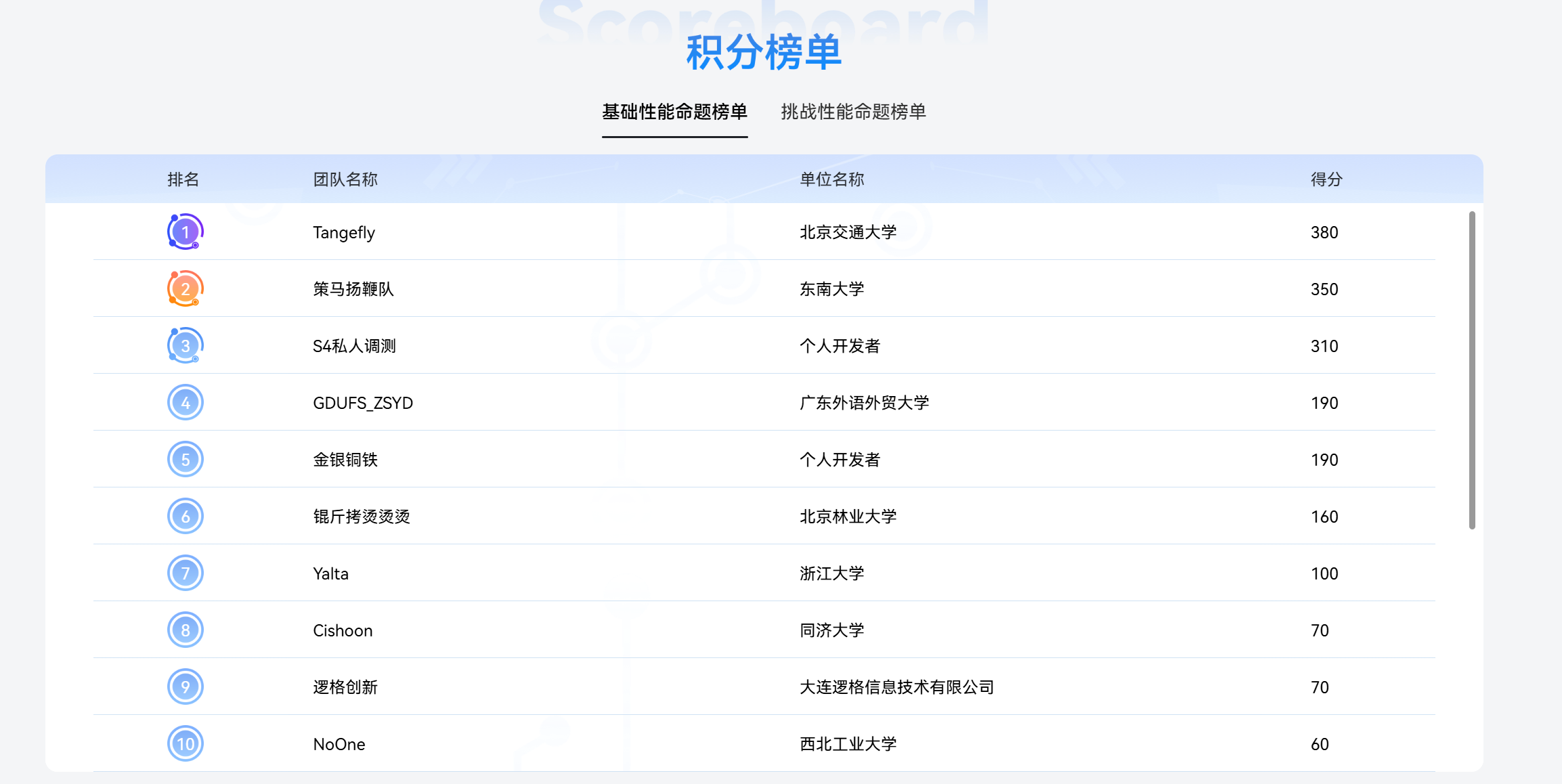 Ø S4赛季“Tangefly”(排行榜总积分第一名):王梓旭(本科生)、肖勋鹏(本科生);
