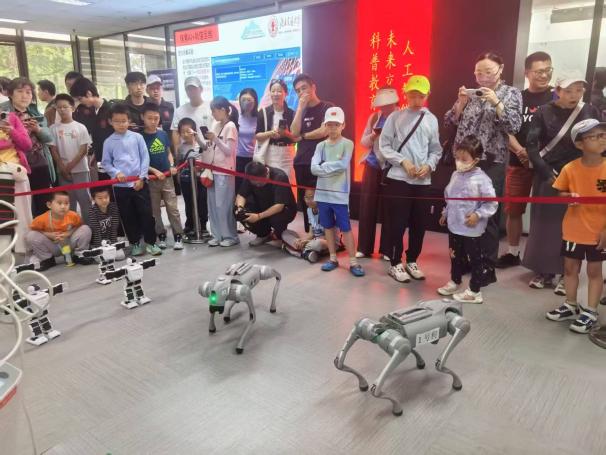 “具身智能”是今年的热词,它是人工智能与机器人技术的融合体,赋予机器“物理身体”和类人的感知、决策与行动能力。我们让计算机实验教学示范中心的互动体验强的智能系统,如机器人、机器狗、无人车,走进科普基地,让青少年了解其中的机械结构、传感器、控制器以及智能算法,从打招呼问好到复杂动作操作,寓教于乐,小朋友们沉浸式体验和探索科技的奥秘。