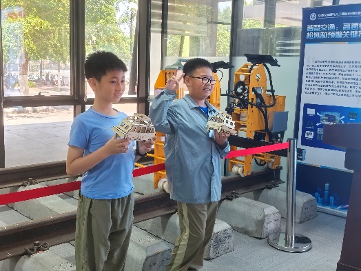 “AI+轨道运维”探索实践,来自公司自主研发“高铁轨道巡检视觉感知”科研和教学成果,让青少年体验轨道智能运维中涉及到的传感器、巡检系统、AI病害识别的工作过程。但是,庞杂的技术很难在短短时间内让小朋友理解,为此,科普基地设计了“把‘巡检车’带回家”的项目,融合实验设备开放、纸板模型拼搭环节,让小朋友们看到、说到、做到,沉浸式体验。通过具象化的科技场景,让"大国重器"触手可及,为未来播下科技的种子。