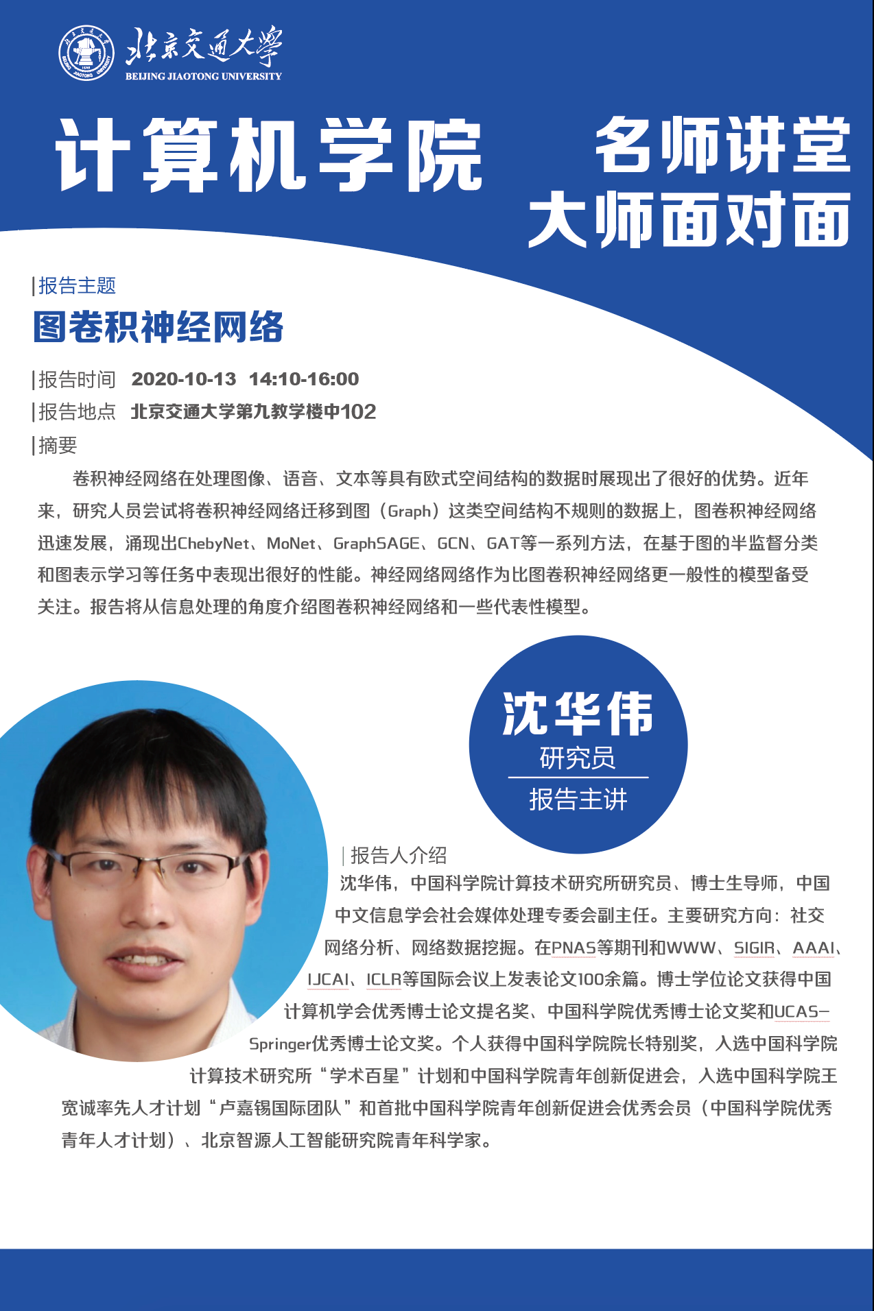 首页» 研究生教育» 通知公告» PA捕鱼官方网站大师面对面预告2020.10.13-图卷积神经网络 PA捕鱼官方网站大师面对面预告2020.10.13-图卷积神经网络 发布时间:2020-10-12 阅读次数: