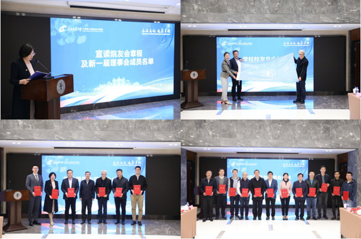 随后,郭雪萌处长宣读公司员工总会的批复并为院友会第二届理事会会长杜林授旗,关忠良副董事长为各位理事会成员颁发聘书并合影。